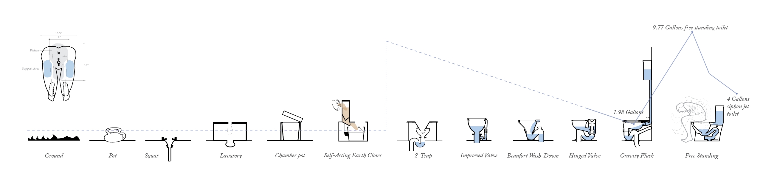 Research starts with focus on domestic bathrooms –a space that typically hidden: private, intimate, vulnerable moment, and fundamental. Design tends to ignore the relationship between cultural production, architecture and the environmental impact of our systems. Standardization of building elements naturalizes the prevailing sanitation systems, shaping the way we control bodies, understand hygiene, and reinscribe accepted practices and social norms.